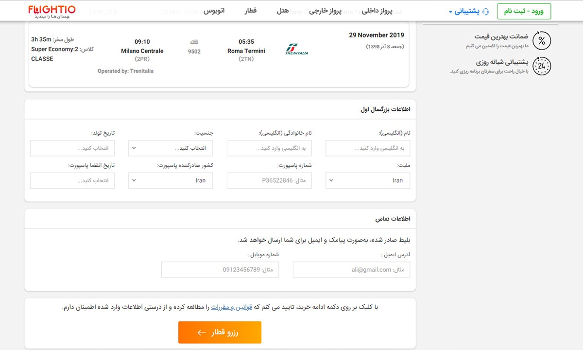 پس از اتمام ورود اطلاعات، گزینه «رزرو قطار» را بزنید تا بلیط برای شما رزرو شود.