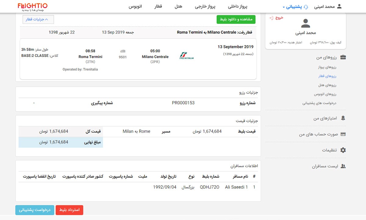 اگر هر نوع بلیط یا خدماتی از سایتما خریداری کرده باشید، به راحتی میتوانید در پنل کاربری خود درخواست استرداد بدهید. این درخواست توسط تیم ما بررسی خواهد شد و در صورت تایید اولیه، جریمه استرداد محاسبه میشود و پول پرداختی به حساب شما واریز خواهد شد.مراحل استرداد بلیط: